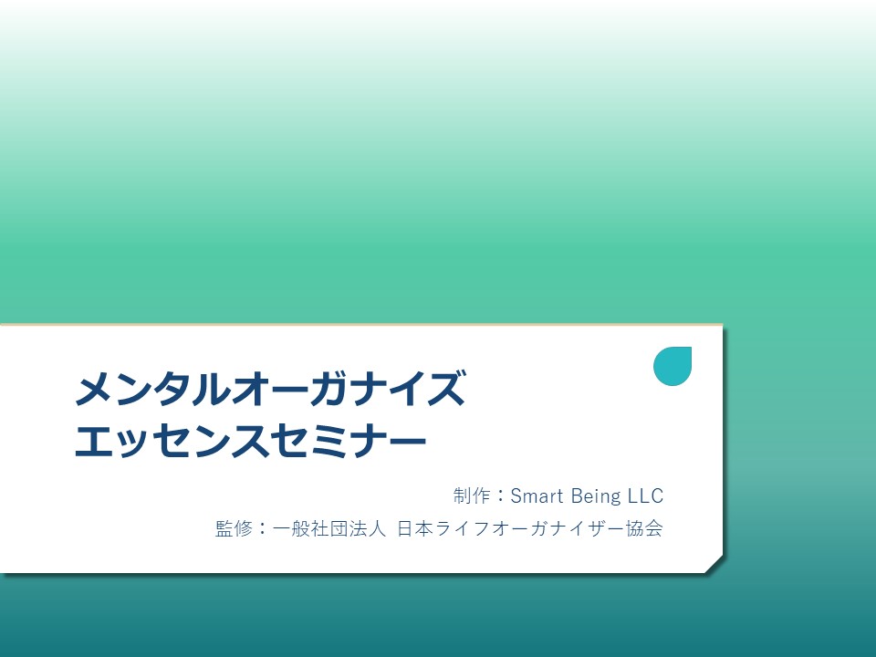 このセミナーでは、メンタルオーガナイズの考え方のエッセンスをお伝えし、日常に取り入れるヒントをご紹介します。