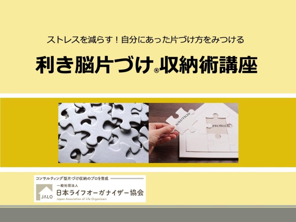 この講座では、あなた自身の利き脳タイプを診断し、タイプ別の片づけ・収納の考え方と実践方法をお伝えします。